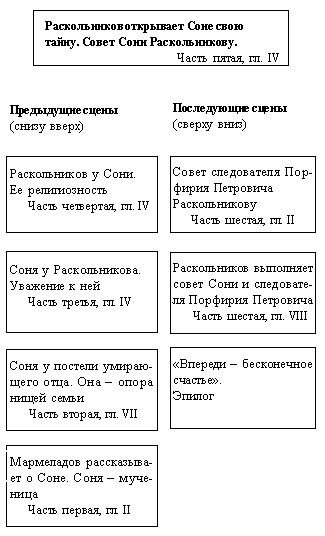 Итак, Раскольников совершил преступление, которое завело его в тупик. Соня же в это время получила желтый билет. Линии их жизни пересеклись в самой критической точке для них: именно в тот момент, когда нужно было раз и навсегда решить, как жить дальше. Старая вера Раскольникова уже пошатнулась, а новую он пока еще не обрел. Обреченность и невольная жажда смерти как выход из тупика овладели им.