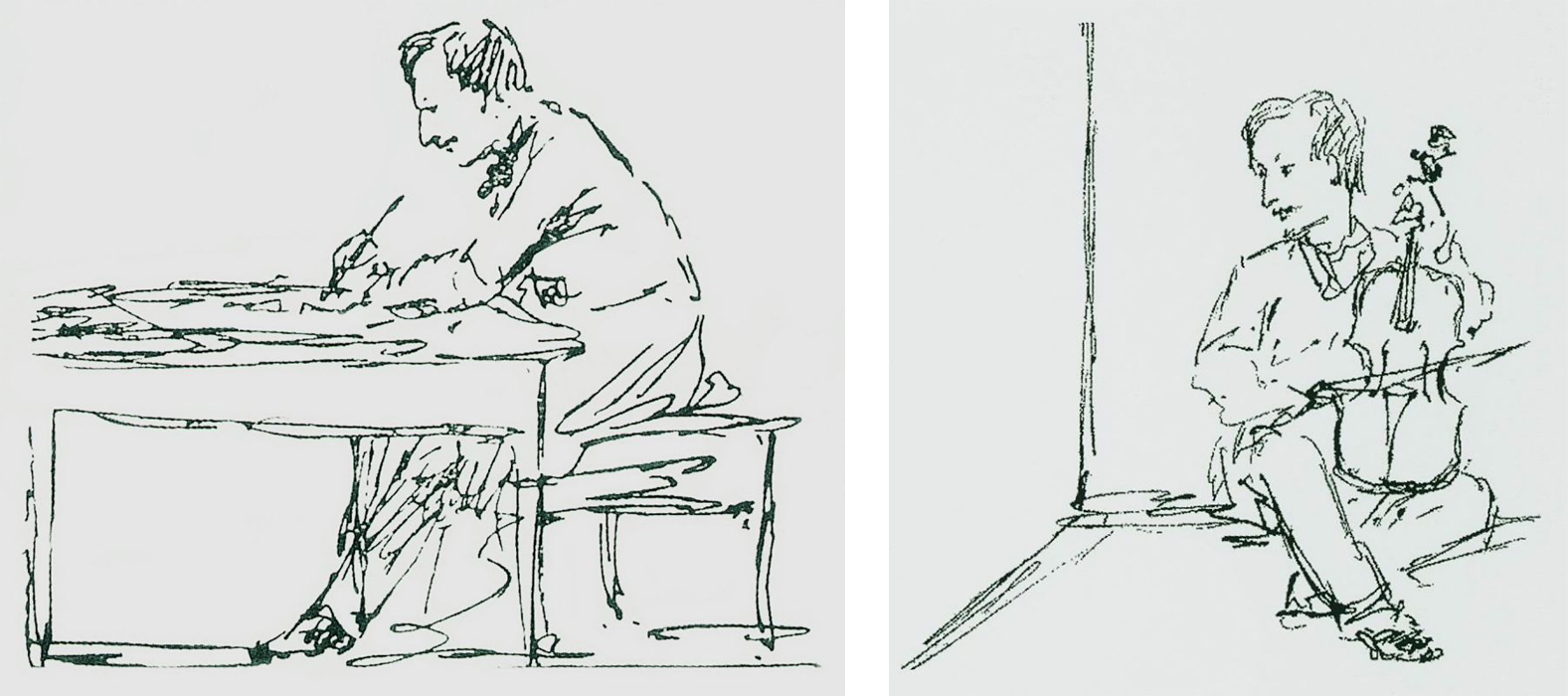 Интересный вопрос: почему на рисунке Айвазовский не упирает скрипку в подбородок, а держит ее наподобие виолончели? Биограф Юлия Андреева объясняет эту особенность так: «По многочисленным свидетельствам современников, скрипку он держал на восточный манер, уперев ее в левое колено. Таким образом он мог одновременно играть и петь».